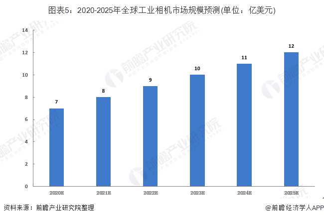 據(jù)前瞻產(chǎn)業(yè)研究院的預計,全球工業(yè)相機市場將在2020年達到7億美元,2025年增長到12億美元。工業(yè)相機市場規(guī)模增長可以歸因于制藥以及食品和包裝最終用途行業(yè)對工業(yè)相機不斷上升的需求。亞太地區(qū)工業(yè)相機市場的增長是由于工業(yè)4.0日益普及以及對人工智能的需求。